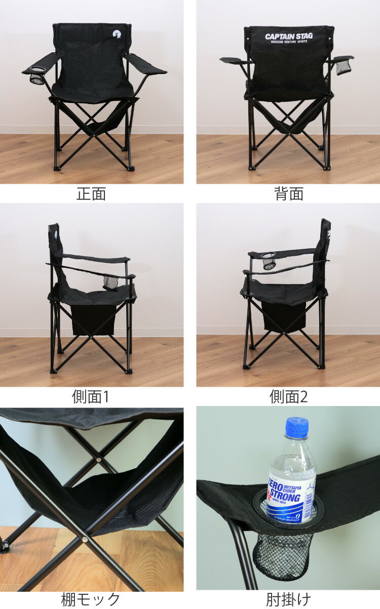 アウトドアチェア 折りたたみ 棚モック付ラウンジチェア キャプテンスタッグ ( CAPTAIN STAG 折りたたみ椅子 ドリンクホルダー付き キャンプチェア コンパクト 背もたれ アームレスト モック棚 )【3980円以上送料無料】