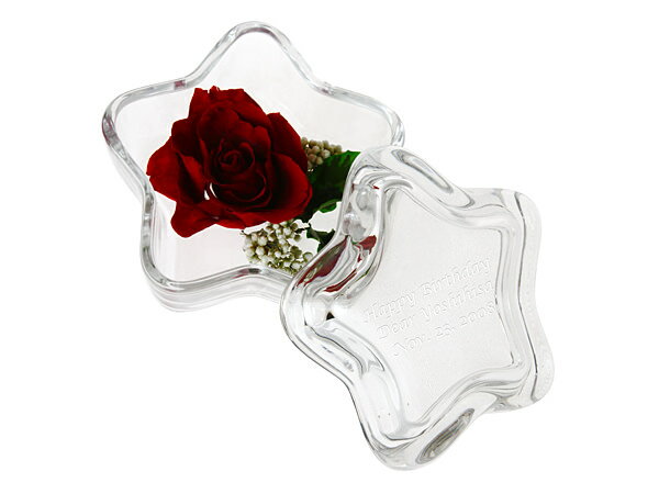 プリザーブドフラワーの入ったかわいい星の形のガラスケース、ふたにメッセージを入れることができます。