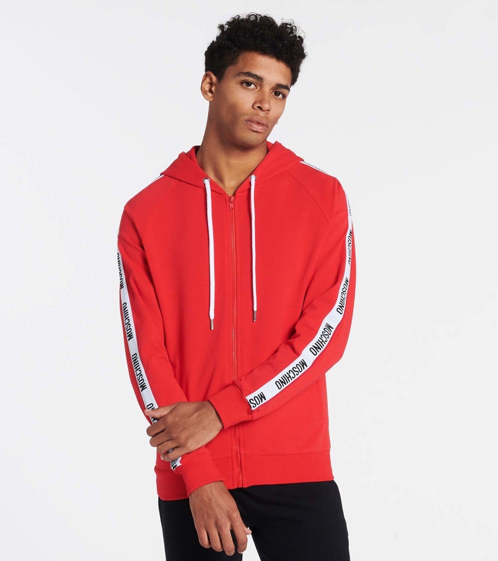 モスキーノ ロゴ フーディー パーカー 赤 レッド ジップフーディー メンズ 【 RED MOSCHINO SIDE TAPE LOGO FULL 】