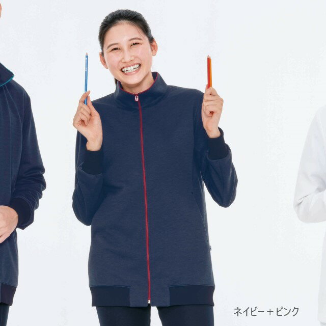 TJ2000 ナガイレーベン 介護ウェア ジップアップブルゾン 男女兼用 長袖 両脇ポケット ニット素材 吸汗 ストレッチ 業務用洗濯可 形態安定 NAGAILEBEN 医療用 看護師 ナースウェア ユニセックス 上着 防寒 羽織 スタンドカラー 立ち襟