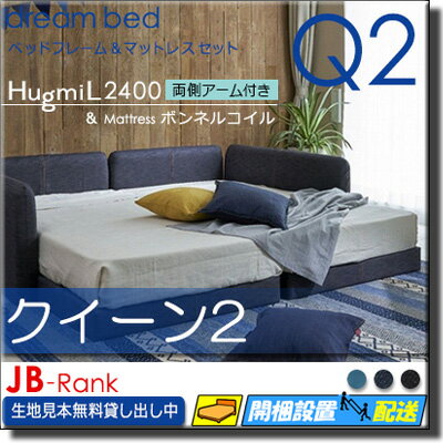 【クイーン2】【生地見本無料貸し出し中】【正規販売店】ドリームベッド ベッド フレーム セット ハグミル 2400 カラーJBランク 両側アーム付き ペニーセーバー270 F4 マットレス付 クイーン2 DB2181