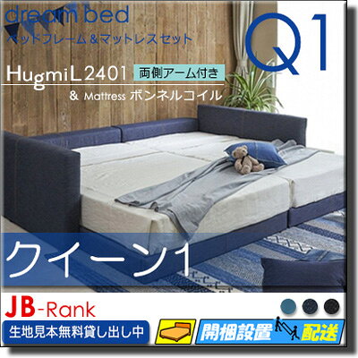 【クイーン1】【生地見本無料貸し出し中】【正規販売店】ドリームベッド ベッド フレーム セット ハグミル 2401 カラーJBランク 両側アーム付き ペニーセーバー270 F4 マットレス付 クイーン1 DB2104