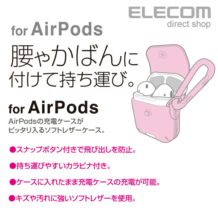 ■対応機種:AirPods■セット内容:ケース本体×1、カラビナ×1■材質:ケース本体:合成皮革、カラビナ:亜鉛合金■カラー:ネイビーエレコムダイレクトショップ傷や汚れに強いソフトレザーを使用!フラップ部分に飛び出し防止のスナップボタンがついたAirPods用レザーケース。
